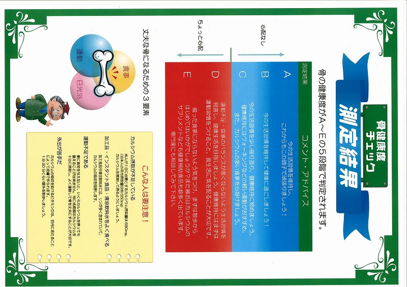 健康診断で精密検査をきちんと受けていても意外と見逃されがちなのが"骨"なので、今回の測定を基に内蔵だけではなく「骨」の健康にも留意して生活していくきっかけになったと感じました。